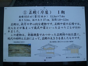 この遺跡は、北勢バイパスという道路を建設するにあたり、事前調査の時に確認されたということで、古代(こだい)、奈良時代の役所の遺跡だそうです。(この公園(遺跡)の真上を道路が通っています。)この公園へ行ったことがある人はいますか?歴史的に価値のある場所が私たちの住む町の中にあるということで、歴史に興味のある人は、機会があれば是非(ぜひ)出かけてみてください。