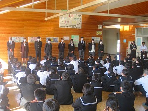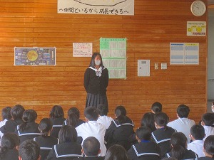 『ツレと仲間は違う』、『仲間は何でも言い合える関係』と、中学校時代の行事等を通して知ったことや考えたことなどを、自分の言葉で伝えてくれていました。