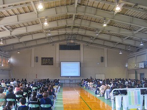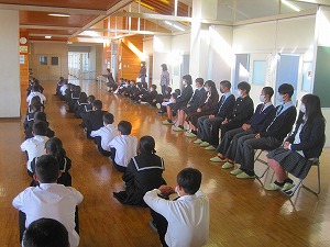 年齢(ねんれい)の近い先輩の言葉は、1年生の皆さんの心にも入りやすかったのではないでしょうか。貴重な話をしてくれた高校生の皆さん、ありがとうございました。