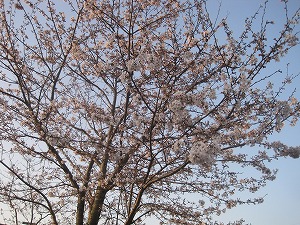 さて、校内の草木は元気に生長中です。正門横の桜の木も、ずいぶんと花が増えてきました。木によって違いはありますが、写真の木は、3~4分咲きというところでしょうか。