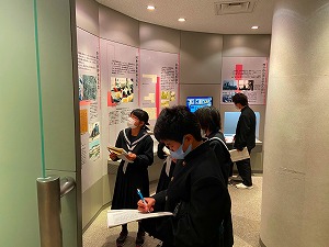 講演中、1年生は講師(こうし)の方の話を真剣(しんけん)に聴くとともに、興味深く展示物などを見学する姿があったようです。今までの学習で学んできたことを、これからの自分自身にどのようにつなげていくかが、これからの大きな課題になっていくのでしょうね。