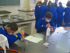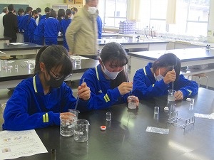 進路学習(これからの自分の生き方を考える学習)として、校区内にある高等学校の様子を知り、学習内容の一部を体験させていただくことで高校生活についての理解を深めるなどの目的で実施しました。