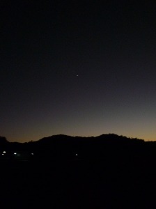 【午後6時前、南西方向を撮影しました。上空中央付近の小さな点が星です。見えないかな~。(星を上手に撮影する技術があればいいのですが…。)】