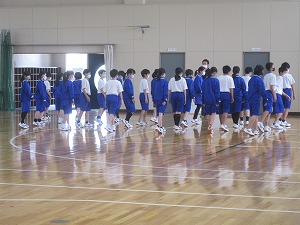 1年生が保健体育科の授業で集団行動に取り組んでいました。