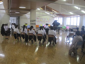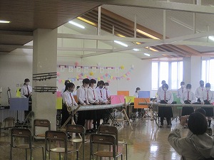 ピアノや打楽器による演奏に、保護者・地域の方や本校教職員が聴き入りました。この日のために3年生も参加し、久しぶりになごやかな雰囲気のなか演奏が行われました。3年生による『竹の舞』は、ぴったりと音があっていました。さすがでした。