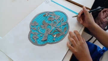 もう一つの活動として、三重県の伝統工芸である「伊勢型紙」を体験しています。