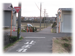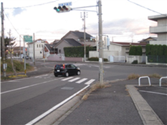 ◇ 川島地区市民センター東側県道交差点(信号待ちのとき広がらない。車道に出ない。)