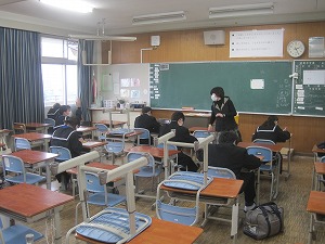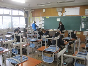 2年生の各教室で検定が行われました。約50名が受験しました。下の写真は、その一部の様子です。
