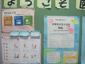 クイズ形式の案内もあり、図書館司書の方に色々と工夫してもらっています。