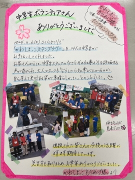 4月6日に行われた、川島地区「さくらまつり」のスタッフの方々から、お礼のメッセージが届けられました。とても気持ちのこもったお手紙!