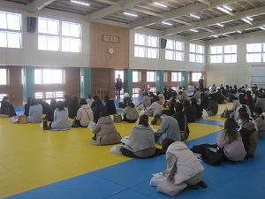 建国記念の日の前日となる今日、来年度新入生の保護者の方々にお集まりいただき、本校武道館において説明会を行いました。ご多用のところ、ありがとうございました。