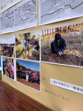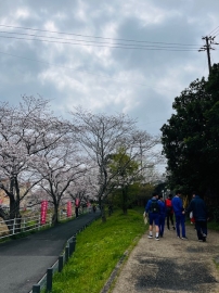 天気もなんとか持ち、花曇りの中、ほぼ満開の桜が咲き誇っていました。これも、”さくらの守ボランティア”の皆さんの努力のたまものでもあり、それに参加してくれた三滝中のボランティアの皆さんのおかげです。ありがとうございます。その活動の様子も展示してもらっていました。