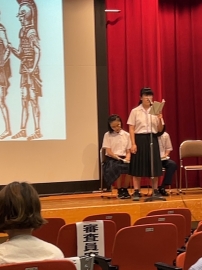 |  | | | |  |  | 8月27日、四日市総合会館にて「THE BENRON」が行われました。各中学校から代表が集まって、自分の考える主張を伝える、スピーチコンテストです。三滝中学校からは、山中樹璃さんが参加しました。「今を生きる人たちへ」と題し、"自死"をテーマとして、思いとどまらせるために自分たちは何ができるのか、普段のわたしたちにもできることはあるはずだ、ということを考えた内容です。会場に響く堂々とした声で、表現豊かに自分の主張を伝えることができました。お疲れさまでした!  |  |  |