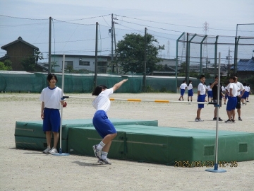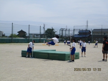 体育の授業中、高跳びにトライする三滝っ子。いろんな跳び方に挑戦中です。