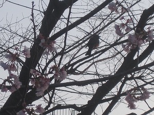 校地内の一部で咲いている木もありますが、早咲きの桜でしょうか。