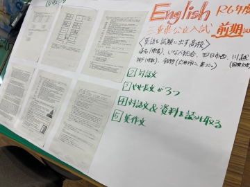 試験問題もさっそく公表されたので、2年生の先生方はそれを掲示していました。「この問題は1年生、この問題は2年生の問題」と明記して、3年間の学習が出題されていることがわかるようにしていたり、「これくらいの英文の量を読む必要がある」と掲示してくれています。