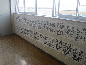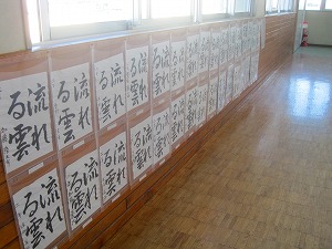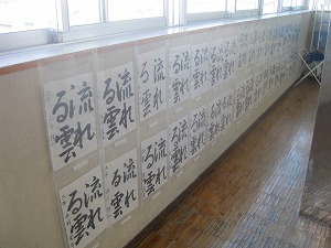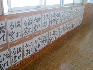 【2年生各学級の書写(毛筆)『流れる雲』】