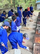 今晩のカレーづくりにいそしむ1年生のみなさんです。もうそろそろ食べ始めの予定ですが…おいしいカレーになったかな?ワクワクとドキドキがとまりません(先生はヒヤヒヤかしら…)