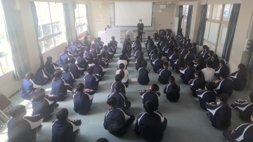 講演では、矢島さんがお笑い芸人を志したきっかけや、相手を思いやる「支援的ユーモア」の大切さについて、ユーモアを交えながら分かりやすくお話しいただきました。生徒同士が交流する活動も取り入れられ、コミュニケーションの大切さを体験的に学ぶことができました。