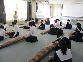 先週から始まっているお琴の授業も最終回を迎えました。校内に「さくらさくら」の琴の音が響き、春先を耳からも感じられる日々でした。