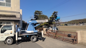 今週は校内施設整備の一環で、敷地内にある木の剪定を行っています。毎年、四日市市から頂いた予算の中で、子どもたちの生活や地域の迷惑にならないように順番に行っています。校門付近の門かぶりの松や築山もきれいにしていただきました。