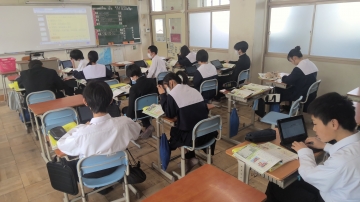2年生は1年後に迫った進路選択に向けて、上級学校調べの学習に取り組んでいます。高校と言っても様々な科があり、その選択によって3年間の過ごし方は大きく変わります。普通科の中にもコースがわかれていたり、総合学科や探究科などその名前だけでは何をどの様に学ぶのかわからないものも多いです。だからこそ、自分の力で資料を探し、比較・考察し、自分の興味関心や将来像と関連させながら考えていく必要があります。今は個人の立場で、今自分が興味を持った学校を調べています。