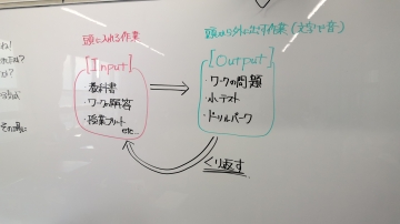 下の写真は1年生のあるクラスに担任が書いた朝のメッセージの一部です。学習の基本を図式化したもので、わかりやすかったので紹介します。