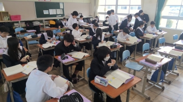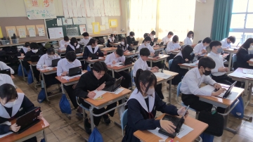 1・2年生は普段通りの授業です。テスト前なのでテスト範囲が終わった教科はテスト勉強に取り組んでいる生徒も多いです。
