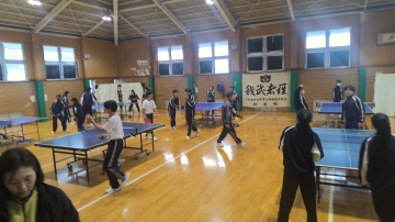 3年生は午前中は県立高校後期受検を意識した模擬試験を、午後は学年レクとして鬼ごっこ、卓球、バレー、トランプなどをして楽しみリラックスした時間を過ごしました。また、放課後はこれまでに進路先が決定・内定した生徒を集め、残りの時間の過ごし方について話をする会を持ちました。