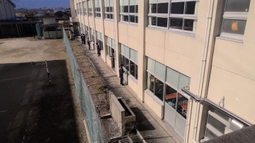 <西朝明中の校舎から見える暁高校>