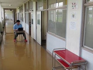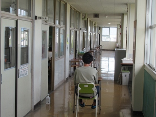 廊下には教員が待機し、不測の事態に対応する準備をしています。
