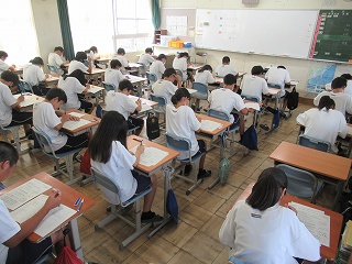 昨日に続き、中間テスト2日目です。本日はテスト後に給食を食べ、午後は後期の学級役員選出や来週に控えた体育祭に向けて学活を行います。