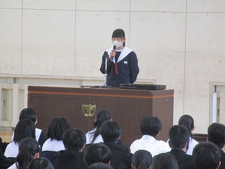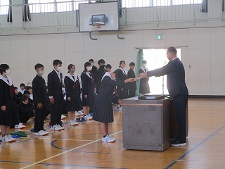 大人になれば、生活している地域の中で、必ず何らかの役割は担っていかなければなりません。中学生活は「素敵な大人」になるための訓練の場です。生徒会や専門委員会の活動、クラスの中での役割も、大人になって、それぞれの組織の一員として、快適に過ごしていくための練習です。クラスの係や班の仕事なども含め、自分の役割を真摯に果たすことで、仲間の信頼に応え続ける人になって欲しいと思います。