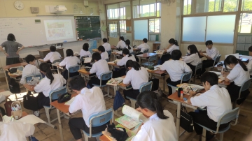 1年生の社会科の授業の中で、南米・ボリビアのウユニ塩湖の映像を見ながらの学習中、実際にウユニ塩湖を訪れたことがる生徒がおり、質問攻めにあっていました。「百聞は一見に如かず」リアルな体験は机上の学習にも勝るものがあります。様々な体験を通して、自己のキャリアを考えていってほしいと感じました。