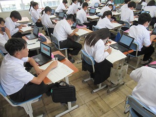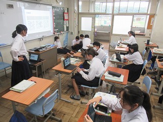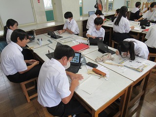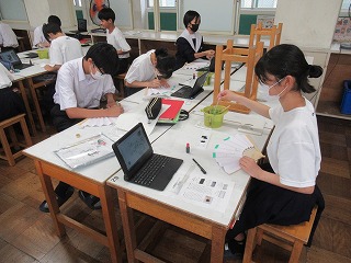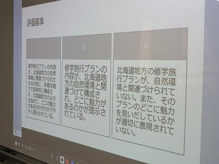 同じく2年生の社会科では北海道の学習のまとめとして、自分たちが北海道に修学旅行に出かけるのであればどのようなプランを立てるのかを考えました。実際の修学旅行は東京周辺を予定していますが、このように生徒が主体となって修学旅行プランを立てることができれば、より深い学びが期待できます。
