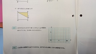 ①数学の時間の始まりです。最初に教員より今日の課題とそのポイントについて説明があります。今回の課題は三角形の面積、グラフに表す関数、そして式とこれまでの数学の学習の知識をミックスして取り組む課題のようです。