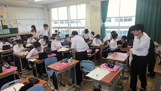 ⑤交流する人がだんだんと増えていきます。Aさんとの意見交流が終わるとBさんと・・のように次々と移動して、多くの考え方を知ることで自分の考えを深めていきます。