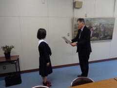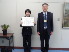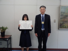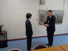 三重県県土整備部防災砂防課の方から、2年生2名が作文の表彰を受けました。