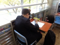 朝の会の前に、ある男子が「あっ、校長おる」と一言。それを聞いた隣の女子が「校長先生って言わなあかんやろ」と忠告。ほほえましい光景でした。