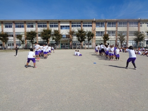 どの学年(クラス)も大なわ跳びの練習に熱が入ってます。
