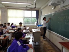 今日は4限目に1年2組で公開(特練)授業(数学:方程式)を行いました。