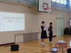 人権フォーラムは、毎年小6と中1が西笹川中学校区の人権について一緒に学び、この地域をよりよくしようとする目的で行っています。