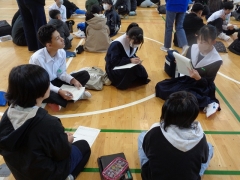 今日は3つの場所(体育館・視聴覚室・図書室)に分かれ、