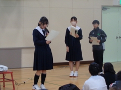 2007年にカナダで始まったピンクシャツ運動をまねて、登校時間帯に、生徒会役員、代議員、専門委員長が「いじめをしない、させない、許さない」といういじめ撲滅のメッセージを発信してくれました。
