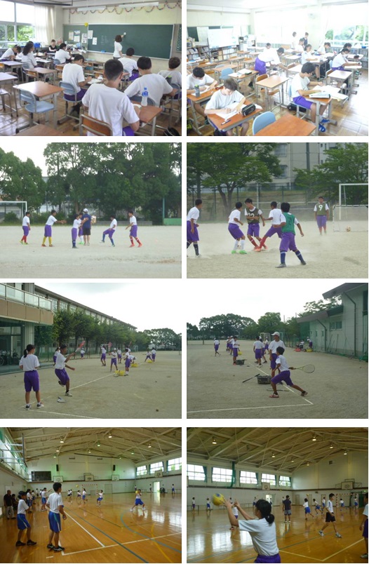 体育館では、ハンドボール部が南中学校との合同練習を行っていました(写真下段)。