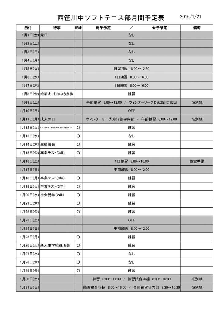 1月の計画