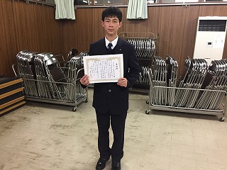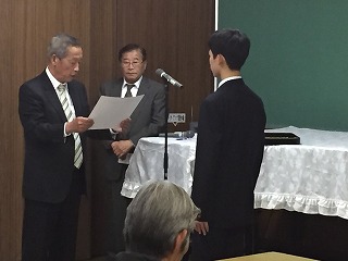 その中で西笹川中学校卒業生(高校1年生)のアドルノ レオナルドさんが地域功労者として表彰されました。