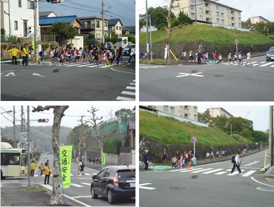 本日11日(木)の朝、地域の交通安全ボランティアの方々を中心にして警察官や交通安全協会の方々など多くの人が主な交差点に立ち、交通安全を呼び掛けていただきました。また、本校でも、昨日から明日までの3日間、朝の登校指導を行っています。