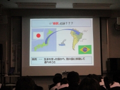 来年度の修学旅行に向けて、事前学習を行いました。来年度も西笹川中学校3年生はJICA横浜を訪問する予定です。そこで、「移民」「日系人」をキーワードとした事前学習を行いました。その中で、日系ブラジル人であるカリナさんの紙芝居を読んだ生徒の感想を一部紹介します。 「今日は日系人について学びました。日本から移民した人で、移動した先の国の国籍や永住権を取った人が日系人なんだとわかりました。カリナさんの最後のセリフである”国が離れていてもこの世界にいるから仲間”という言葉がとても心に残りました。」