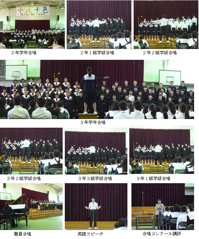 平成30年度文化祭の中で、本日の午前中に実施した2、3年生合唱、職員合唱、英語スピーチ、合唱コンクール講評の様子を紹介します。